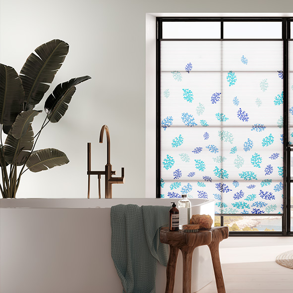 »Water« – das letzte der vier Elemente wird durch aufstrebende, in einer Strömung schwebende Teilchen symbolisiert, die an Korallen erinnern. Sie scheinen mühelos dahinzutreiben bzw. mit Leichtigkeit aufzusteigen. Eine fast meditative Wirkung versprüht dieses Dessin im Raum. Ob im Bad oder auch im Schlafzimmer, das Teba® DUETTE® Wabenplissee projiziert immer eine entspannte und frische Atmosphäre in Ihrem Zuhause.