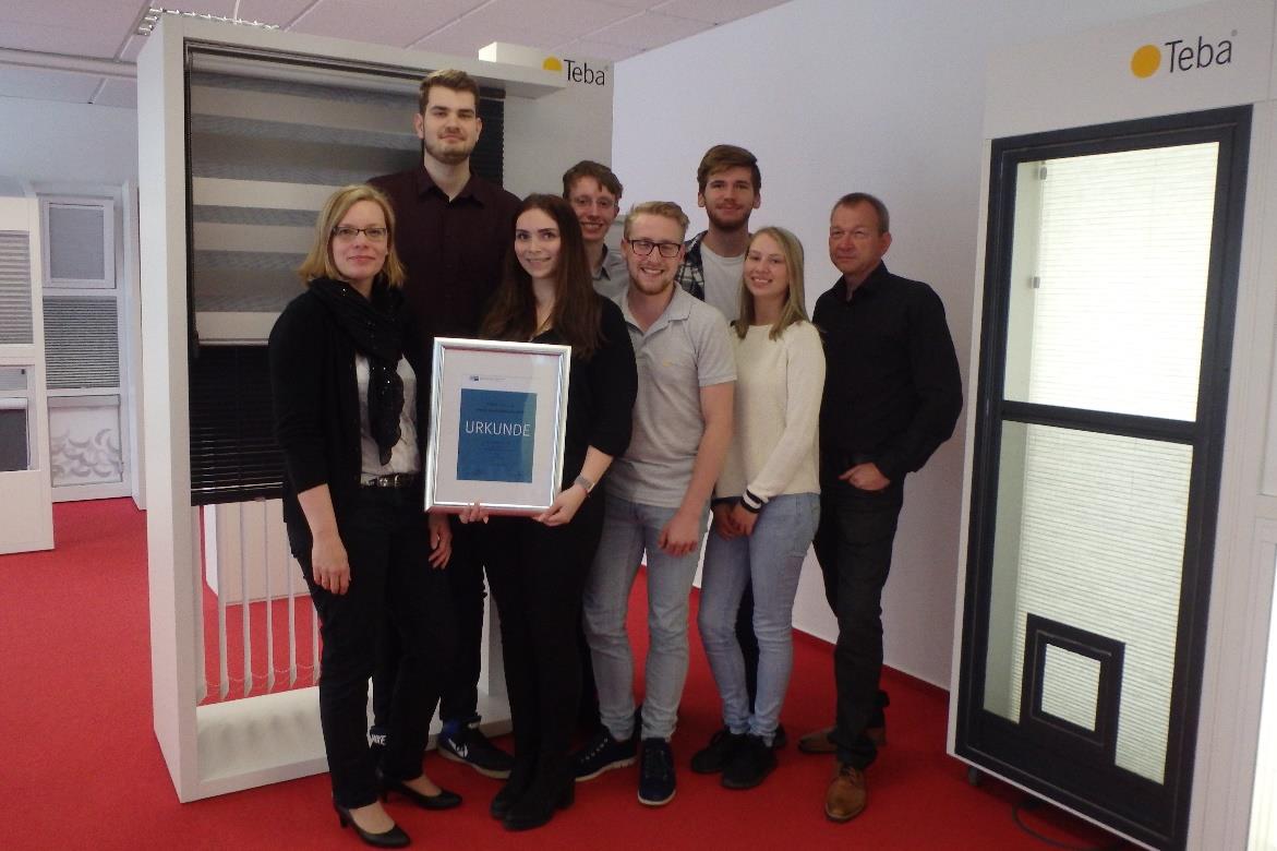bestehend aus Lisa Hopp, Robin Kreimeier und Fabian Sneider haben eine Mitarbeiteridee „Papierhandtücher durch Stoffhandtücher ersetzen“ umgesetzt. Die Papierhandtücher verursachen sehr viel Abfall und auch die Herstellung belastet die Umwelt sehr. Mit Hilfe vom strategischen Einkauf wurden verschiedene Anbieter ausgewählt, verhandelt und vier Wochen ein Testlauf gestartet. Diesen betreuten unsere Auszubildenden von Anfang bis Ende. Nach dem Testmonat ging es in weitere Verhandlungen und die Umsetzung bei Teba.